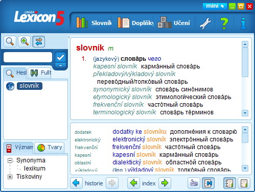 Каждый живущий в Чехии иностранец пользуется словарями, а в первые месяцы — особенно. Увы, российский лидер отрасли электронных словарей, ABBYY Lingvo до сих пор не имеет даже платных чешских словарей и приходиться пользоваться либо кустарными поделками, либо сторонними программами. К счастью, чешская компания Lingea (их словари продаются в каждом чешском книжном) выпускает также очень неплохие электронные словари Lingea Lexicon 5. К сожалению, триал-версию найти не удалось, поэтому даю ссылку на найденную в Сети полную (но, помните, что вы пользуетесь ею лишь для ознакомления и купите за 1500 крон лицензионную).