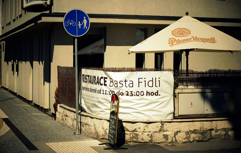 «Еда, в основе которой лежат рецепты наших бабушек» — так пишут о себе Basta Fidli. Здесь готовят чешские и итальянские блюда (хотя на сайте об итальянской еде нет ни слова). Приятный минималистический интерьер с угловатыми столами и стульями с высокой спинкой. Имеется сеть Wi-Fi без пароля. Стоимость обеда (первое, второе и десерт) – 110-130 крон, без десерта – 90-100 крон. В Basta Fidli самые большие порции супа! Еду подают, как в дорогих ресторанах (тарелки в тарелках, украшение блюд, сервировка стола). Суп приносят обычно в течение 10-15 минут, второе – в течение 5-10 минут следом за первым. На обед здесь бывают как очень интересные (деликатесные) блюда на любителя (например, на десерт мы как-то раз ели макароны с маслом и маком, смешанным с сахарной пудрой), так и привычная русскому человеку еда (домашнее картофельное пюре, соленые огурчики, блины). В зале есть кондиционеры, а на улице – открытая веранда, так что можно пообедать и на свежем воздухе. Заслуженное первое место в ценовой категории выше 100 крон!
