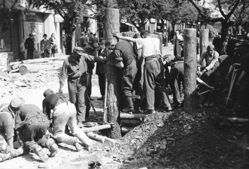 Немецкие военнопленные на работах в городе, май 1945 года:
